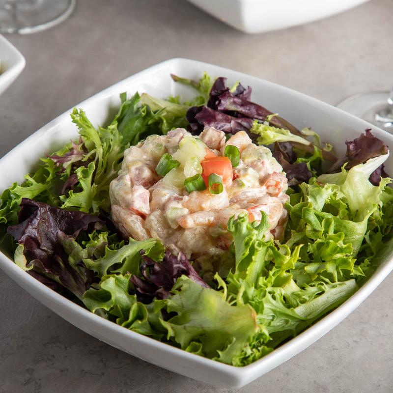 Seasoned shrimp, cucumber, tomato, avocado, truffled remoulade, mixed greens
