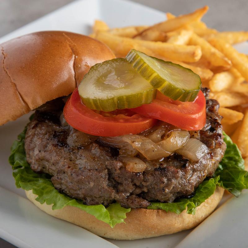 1/2lb. patty, lettuce, tomato, house-made pickles, caramelized onions on brioche bun